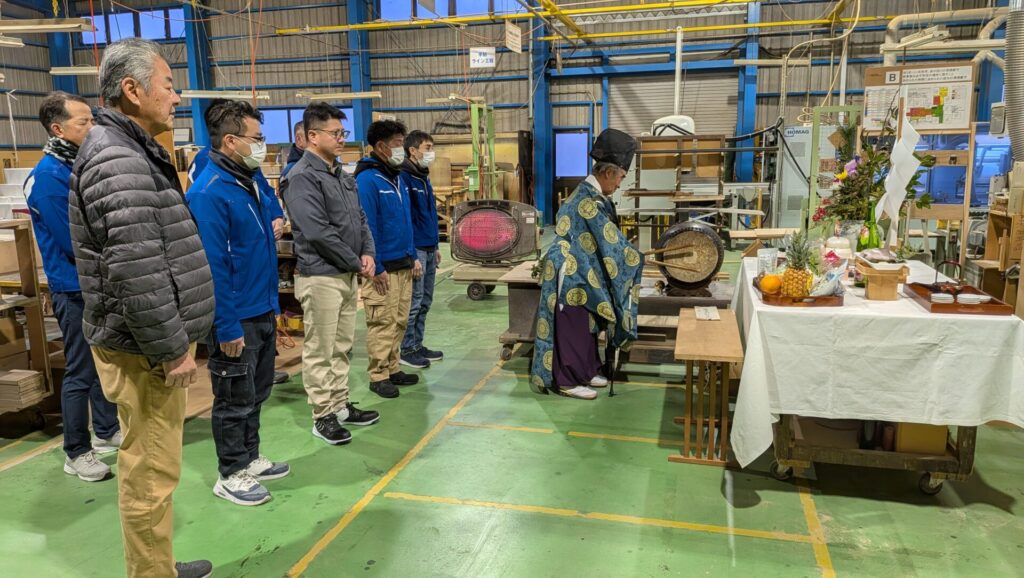 ~丙午~ 新年あけましておめでとうございますお知らせ, スタッフブログ, リクルート / 2026年1月5日 2026年1月5日 新年あけましておめでとうございます。本年も舛元木工をどうぞよろしくお願いいたします。 10年に一度と言われる記録的な高温かと思えば、新年早々には低温注意報。自然の移ろいに驚かされる、目まぐるしい年明けとなりました。 そんな中、舛元木工にも新しい風が吹き込んでいます。12月28日は午後から決算報告会を行い、その後は一年の労をねぎらう忘年会を開催しました。 そして本日は早朝より、日頃よりご縁のある神社の神主様をお迎えし、新年の神事を執り行っていただきました。 改めて感じるのは、1年の早さと、1日の積み重ねの大切さです。エネルギーに満ち、芯の強さを持って行動できる一年にしていきたいと思います。
